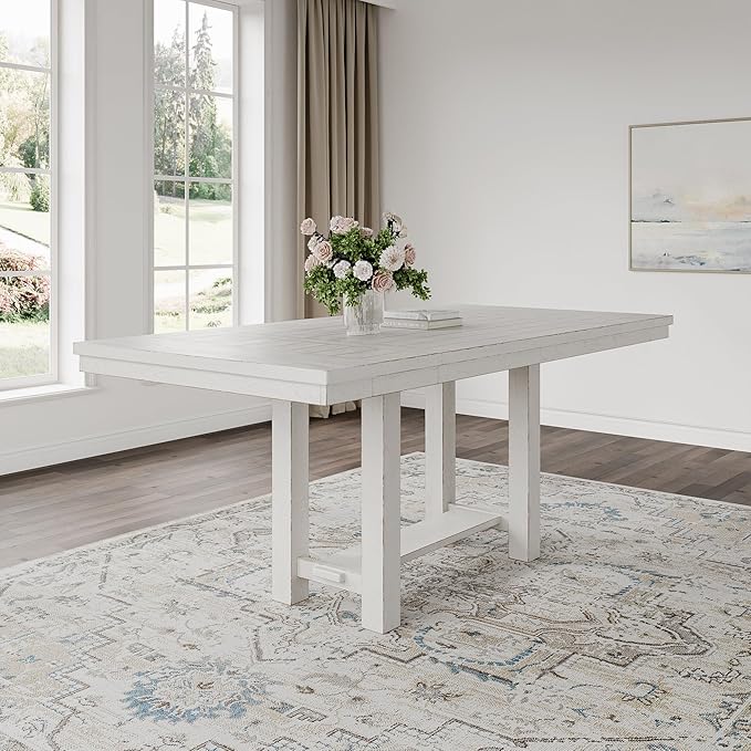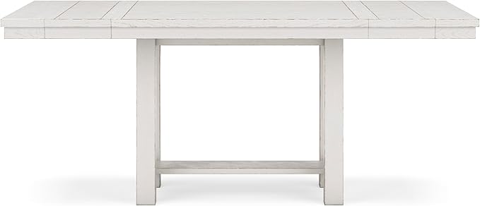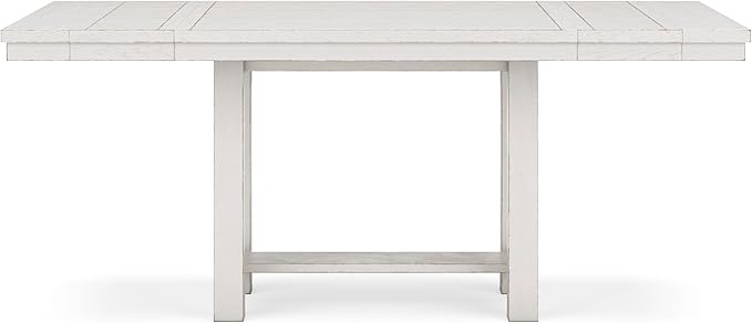 Signature Design by Ashley Robbinsdale Farmhouse Distressed Counter Height Dining Extension Table with Trestle Base, Planked Effect and 2 Removable End Leaves, White
