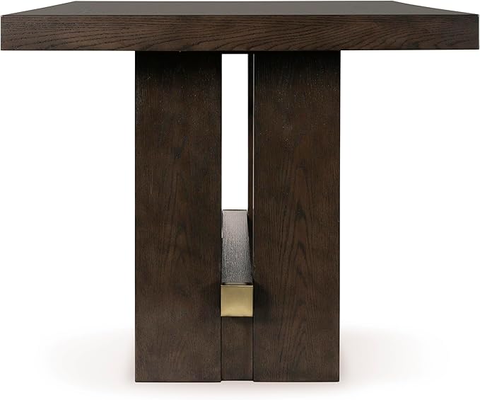 Signature Design by Ashley Burkhaus Contemporary Counter Height Dining Table with Double-Pedestal Base and Wine Rack, Dark Brown