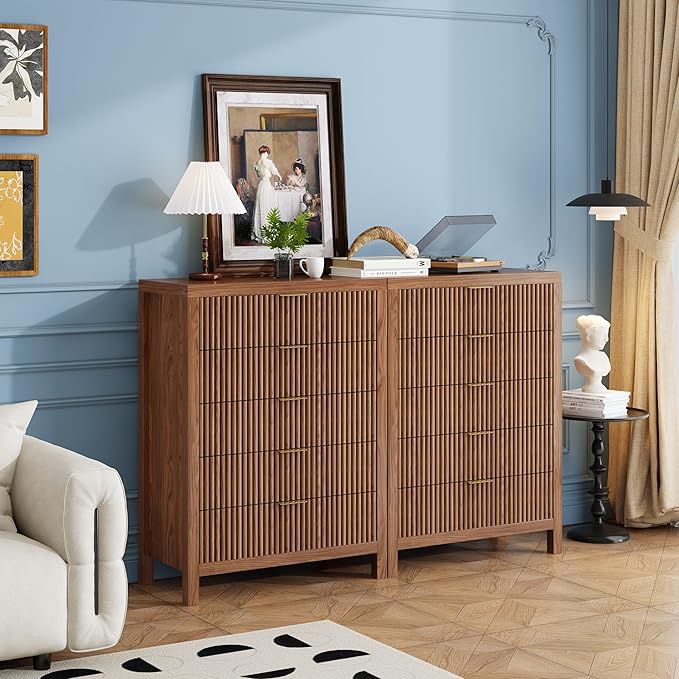 10 Drawer Dresser, 43" Tall Dresser Organizer TV Drawer Cabinet Modern Wood Storage Cabinet, Modern Wood Storage Cabinet for Bedroom, Hallway, Entryway, Walnut Oak X 2