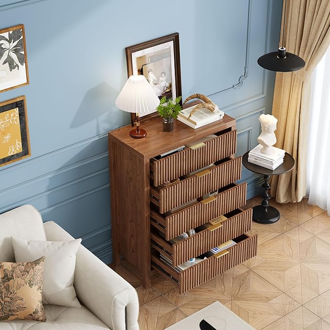 - 【5 Drawer Dresser】Equipped with five ultra-deep drawers, this dresser provides plenty of space for all your daily essentials. The spacious desktop is perfect for displaying small items, lamps, or décor to enhance your room’s style.