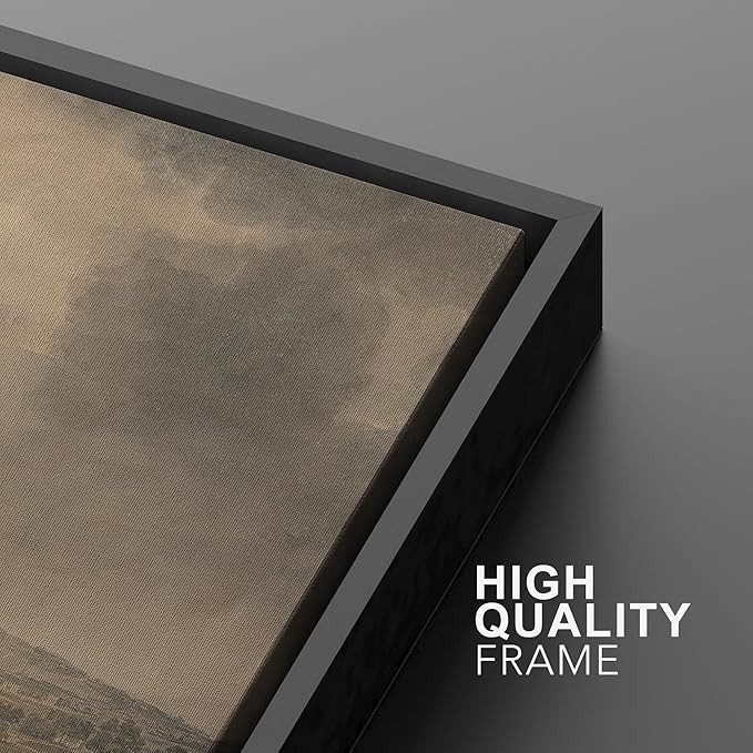 MUDECOR Framed Canvas Print Wall Art Antique Landscape Serene Tree and Mountain Scene Illustrations Realism Decorative Scenic Panoramic Earth for Living Room, Bedroom, Office - 24"x36" Black