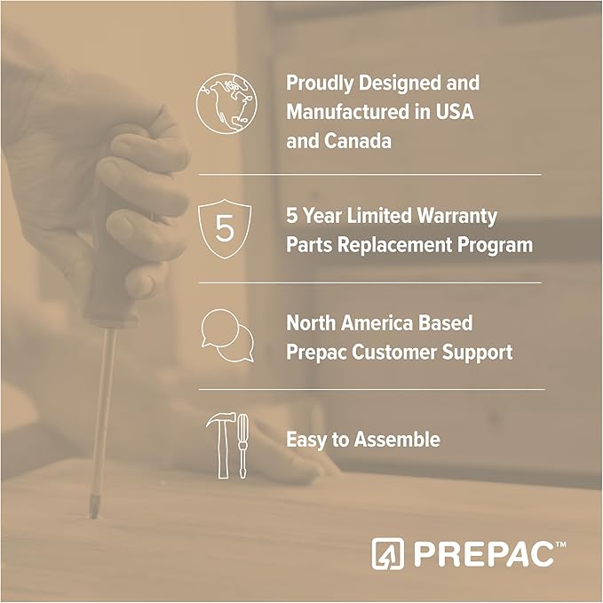 - 5 YEAR WARRANTY: All Prepac products are backed by our 5 Year Limited Warranty- if your product arrives damaged or missing parts, contact us for replacement parts at no charge.