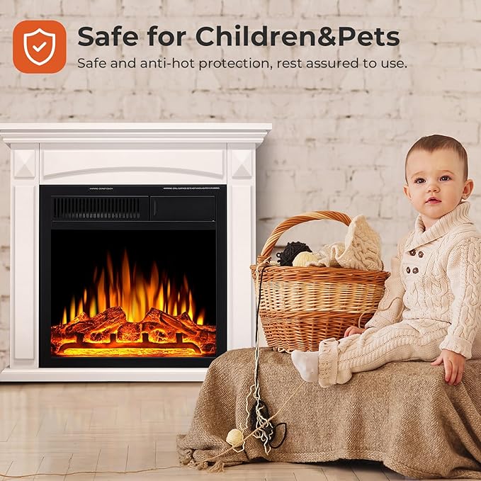 - SAFETY AND 400 SQUARE FOOT HEATING AREA: The overheat safety device makes the fireplace safer and more reliable. Even families with children or pets can use this electric fireplace with mantel with confidence! This fireplace is best suited to heat an area of 400 square feet.