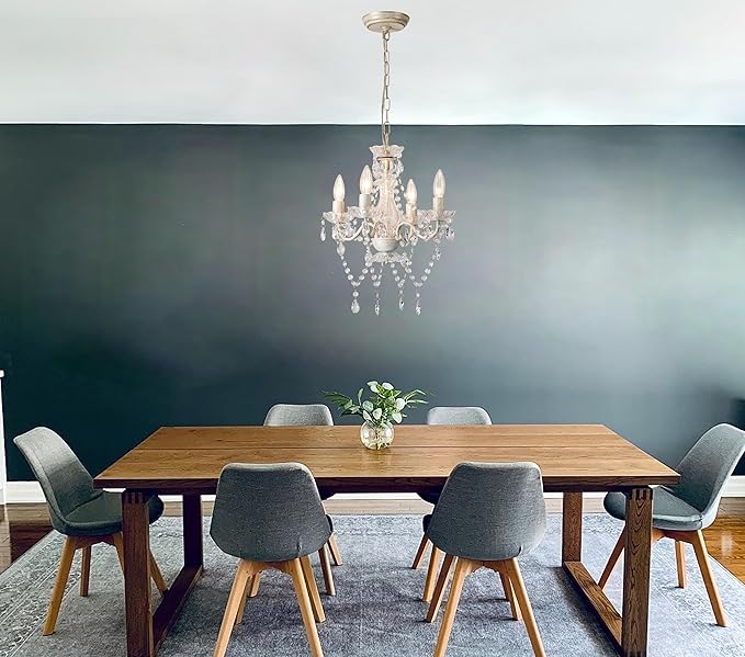 - Small Chandelier Perfect Design: Boasting a charming French country vintage style, this acrylic mini crystal chandelier is adorned with white and gold metal craftsmanship, add a touch of modern farmhouse for your space. The unique design and intricate detailing make it a captivating center piece for any space.