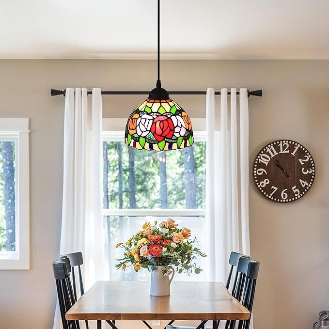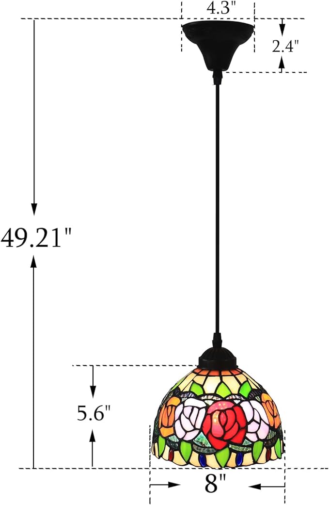 Hanging Lamp Tiffany 8 Inch Hanging Ceiling Light Vintage Farmhouse Small Stained Glass Pendant Lighting for Kitchen Island Dining Room