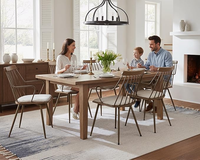 - Mid-century Modern Style: This kitchen & dining room chairs draw inspiration from the classic Windsor design and creates a coastal farmhouse style around the dining table. Its lines are smooth, outlining elegant contours. The antique bronze gold-plated surface exudes a delicate retro charm. The solid wood seats and top bar have a natural finish, with clear and visible wood grain, showcasing a rustic style