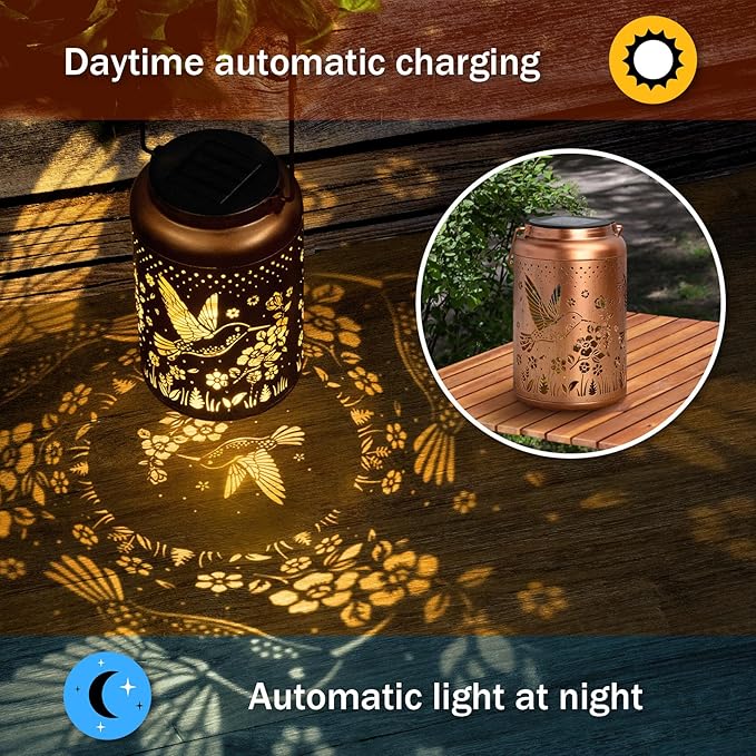 - Durable Solar Lights: Our hummingbird gifts for women are equipped with upgraded panels, making the LED light source more stable; solar hanging lanterns outdoor collect sunlight in the day, allowing garden gifts to continue working at night