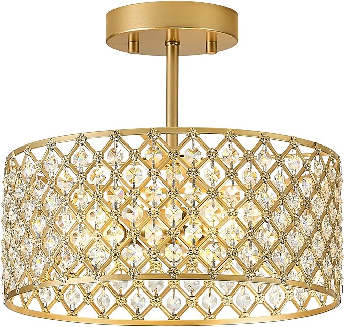 - High Translucency Crystal: The semi flush mount ceiling light comes wirh K9 crystal, the crystal material used allows for high light transmittance, with gold light fixture metal frame, the ceiling light will refract luxurious and special light through the crystal to the surrounding of the ceiling