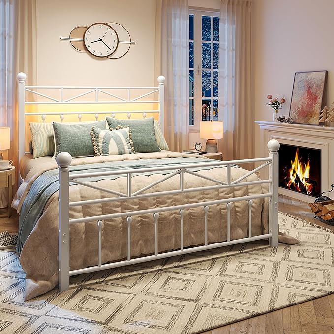 - 【Vintage Style】With clean lines and thick tube frames, the metal full bed frame with headboard effortlessly blends romantic aesthetics with modern flair. The headboard and footboard feature finial bed posts and ball finial accents make a statement in any bedroom space