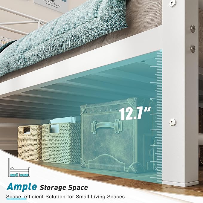 - 【Heavy Duty & Noise-Free Construction】 Built to last with reinforced metal construction supporting up to 883 lbs. EVA foam padding prevents slats from rubbing and eliminates squeaking for peaceful, uninterrupted sleep. The queen size metal bed frame stays sturdy and silent night after night.