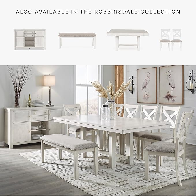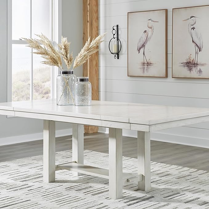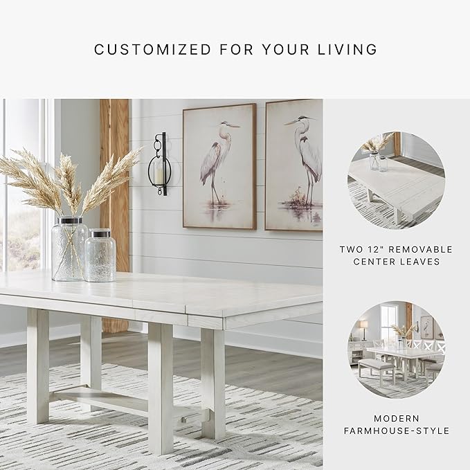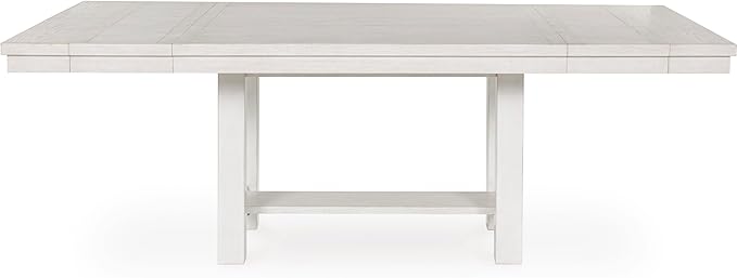 Signature Design by Ashley Robbinsdale Casual Removable Center Leaf Dining Extension Table with Trestle Base, Wood, Ash Veneer, Tabletop with Planked Effect, 2 Removable Center Leaves, Seats 8, White
