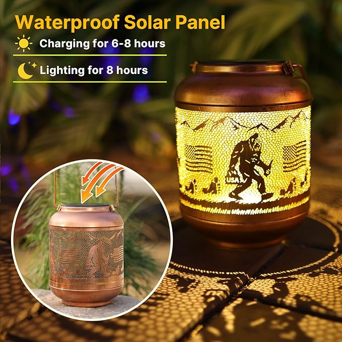 Bigfoot Solar Lanterns Outdoor Waterproof Hanging Solar Lights Big Foot Sasquatch Birthday Gifts for Women Men Metal Decoratives LED Lantern for Patio, Backyard, Porch, Yard, Lawn, Garden Decor