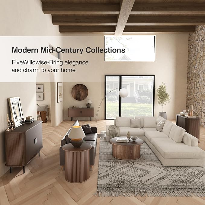 - Sturdy and Practical Material: This fluted coffee bar station cabinet with storage is made of high quality engineered materials to last a long time. The sturdy frame and shelves can bear the weight of the wine bottle without warping or breaking. The bottom has solid metal legs, which are stable while leaving enough room for easy cleaning