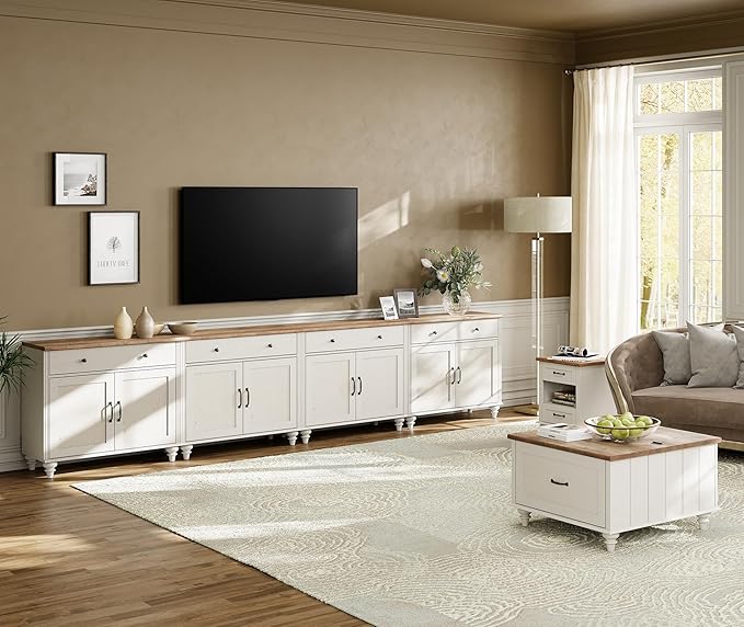 - 4-in-1 Multipurpose TV Cabinet:The 4-in-1 large tv stand can be used separately as 4 tv cabinets. In addition to entertainment center, it can be placed in the dining room as a kitchen buffet cabinet or in the entryway as a console table. They are sent separately in 4 packages, so you may receive them at different times.
