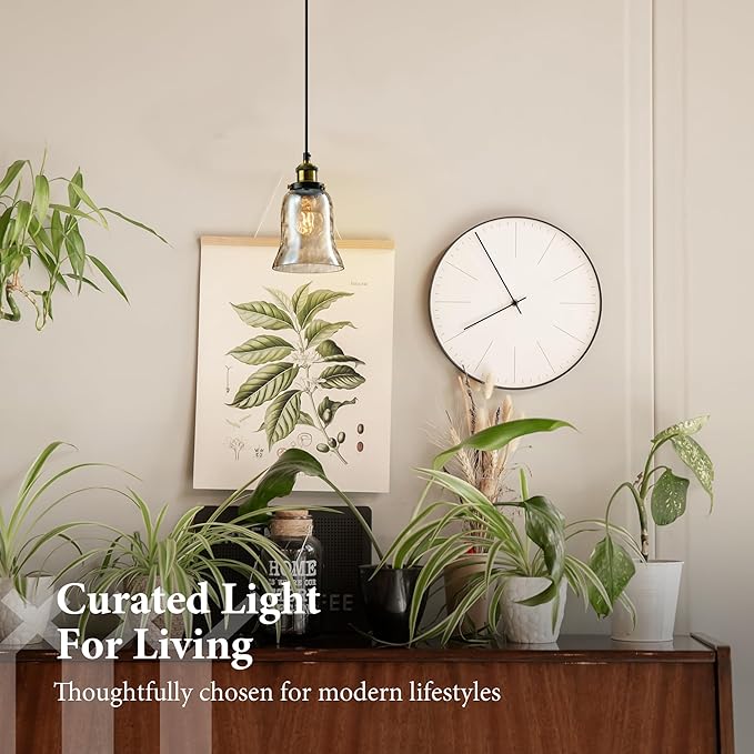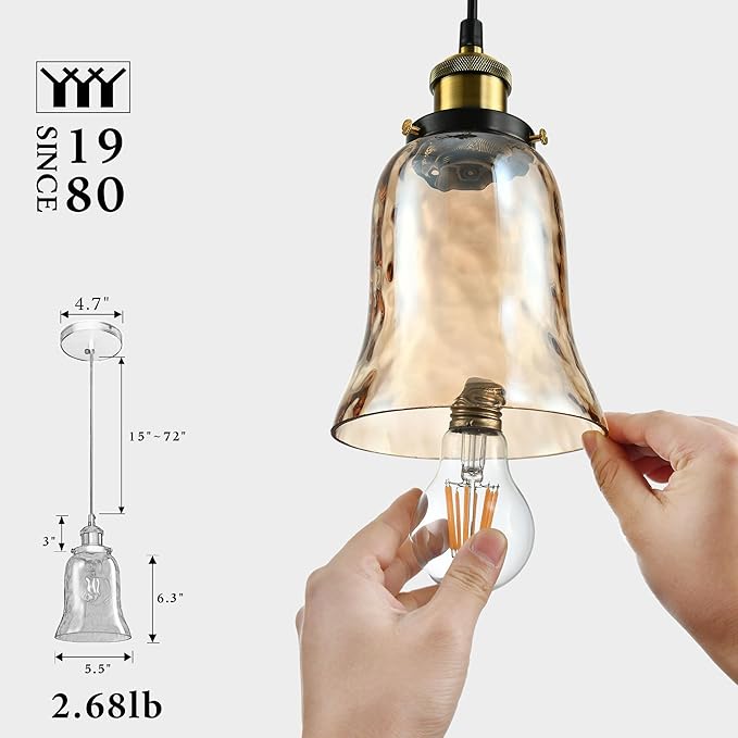 - 【Compact & Elegant for All Interiors】Shaped like an open bell and sized at 5.5" x 5.5" x 6.3", this pendant casts light both downward and outward for a balanced glow. Easily adjustable drop length 15"–72" suits any ceiling height.