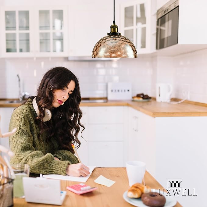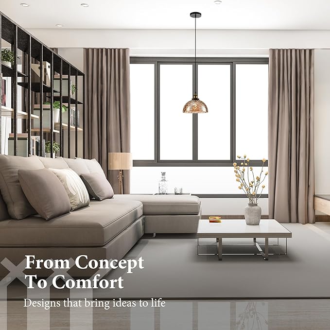 - 【Compact & Elegant for All Interiors】Shaped like an open bell and sized at 9.6"x9.6"x4.8", this pendant casts light both downward and outward for a balanced glow. Easily adjustable drop length (15"–72") suits any ceiling height.