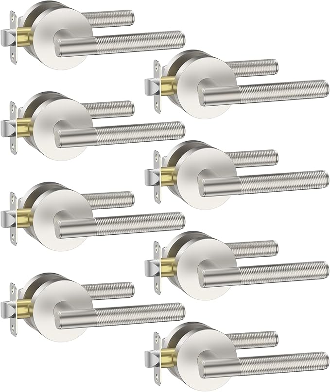 Asidrama 8 Pack Passage Brushed Nickel Door Handles, Door Lever with Door Knobs Indoor for Bedroom or Bathroom, Heavy Duty Door Handles Interior with Locks for Left Right Sided Doors