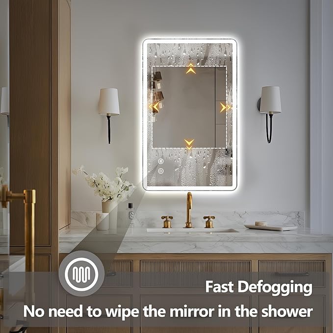 - ANTI-FOG & WATERPROOF: Niccy LED mirror is waterproof with an IP65 rating, ensuring safe use in humid bathroom environments. Fogless mirror no need to worry about wiping the mirror after showering. It is more suitable for bathrooms, hair salons, hotels and makeup studios.