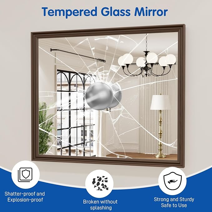 - 【Shatterproof Tempered Glass】: The vintage framed mirror is built with tempered glass which is shatter-proof, burst-proof and more safer to use. The shatterproof film is the important layer that will not splash into pieces when it's broken