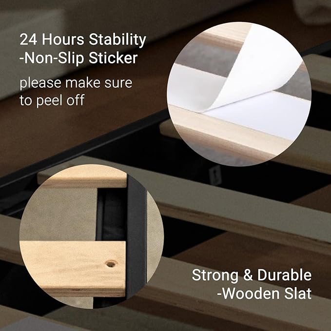 - No Box Spring Needed – Heavy-duty slat system directly supports memory foam, hybrid, and innerspring mattresses.