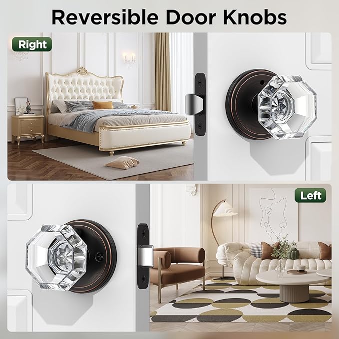 - Great Door Knobs: Our vintage crystal door knobs interior are clear octagon glass shapes, with sturdy zinc alloy plates. Crystal door knobs are heavy duty and solid for long-lasting. These gorgeous diamond glass doorknobs are oil rubbed bronze finished and will surely add an elegant look to your home.