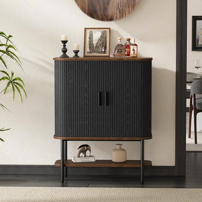 - Modern Bar Cabinets for Home: Designed with sliding doors and natural wood-grain panels with black metal handles, the wine cabinet has a modern and elegant look, and it can be flexibly used as a buffet cabinet, storage cabinet, entrance control table, making it an excellent addition to any modern home or bar area