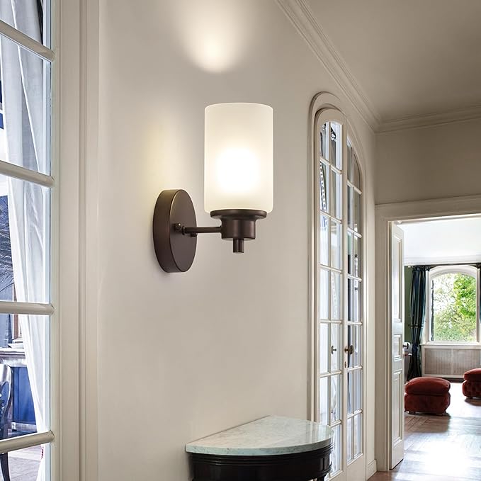 - White Galss Shades: Elegant soft light effect. The wall light with white frosted glass shades diffuse light evenly, creating a soft and inviting ambiance in indoor areas. Open-ended design for easy wiping of lamps and changing of bulbs