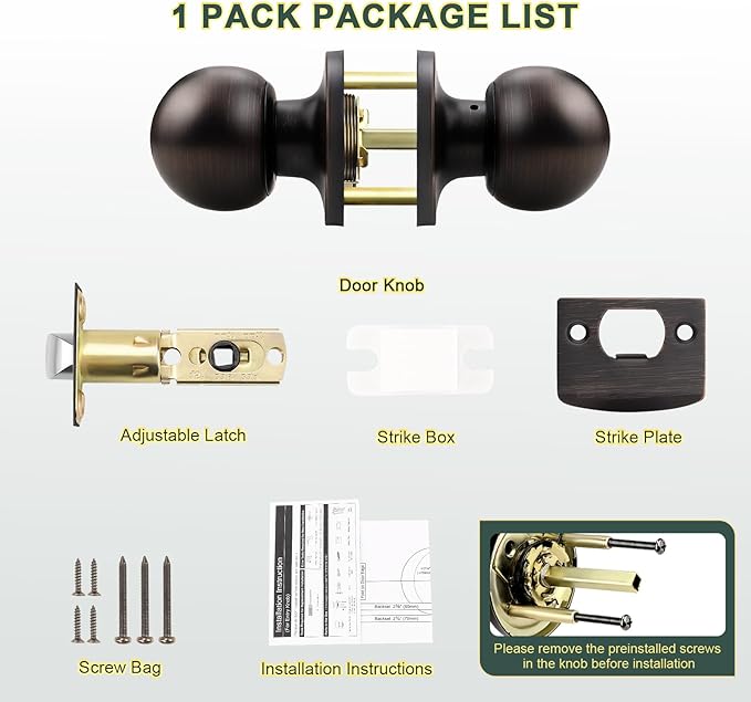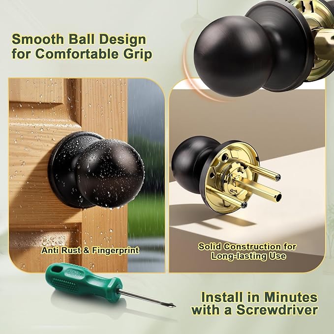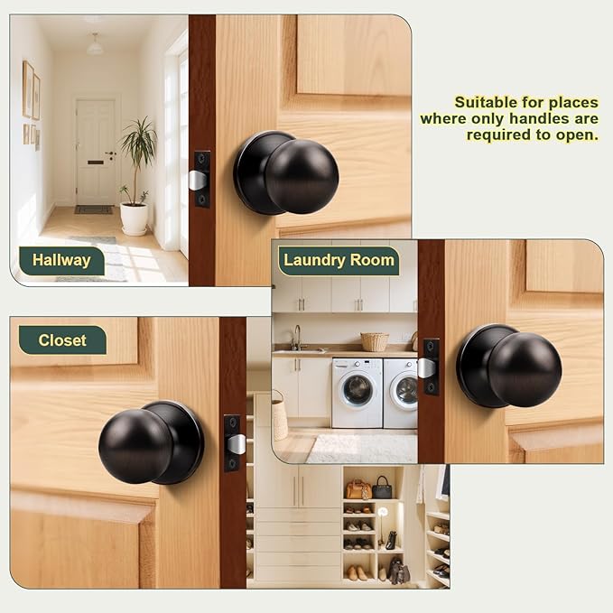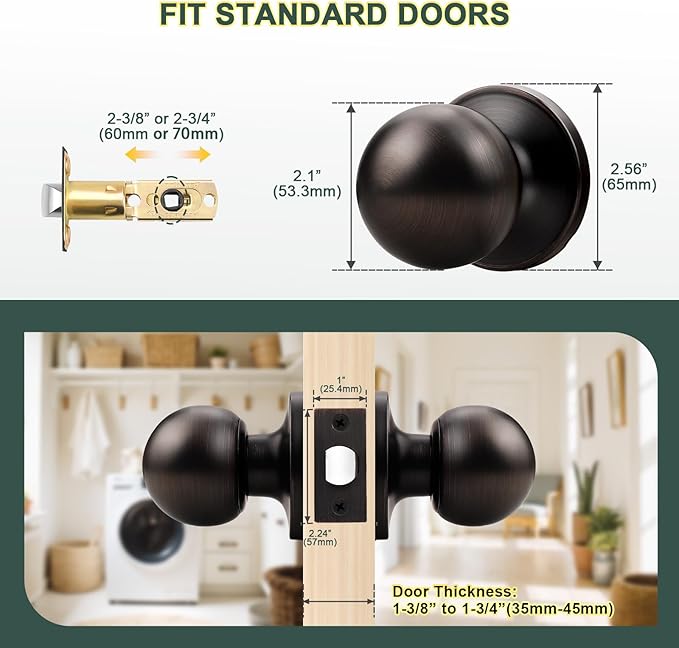 - Sleek Appearance: The bronze door knob features a timeless ball design with a smooth finish that feels comfortable in your hand. Elegant oil rubbed bronze finish adds a unique touch to your home and easily decorates doors