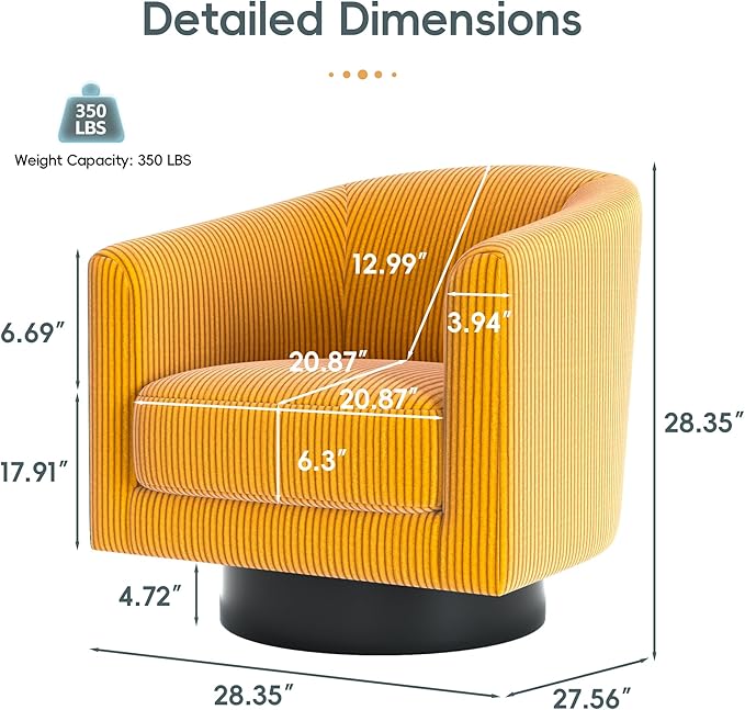 - ππππ πππ ππππππππππππ - The overall size of this armchair is 28.4 (L) Γ 27.6 (W) Γ 28.4 (H), and the seat size is 20.9(L)Γ20.9(W)Γ17.9(H). Load capacity: 350 lbs. Detailed instructions and tools are included in the package, allowing for easy assembly by a single person.