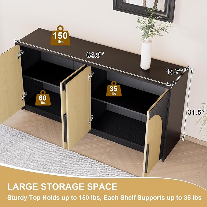 - Durable Construction: Crafted from high-quality shaving board(bearing up to 150lbs), this buffet cabinet with storage is scratch and water-resistant, ensuring long-lasting durability through rigorous testing. You can rely on this sideboard cabinet to stay strong and intact, even with daily use.