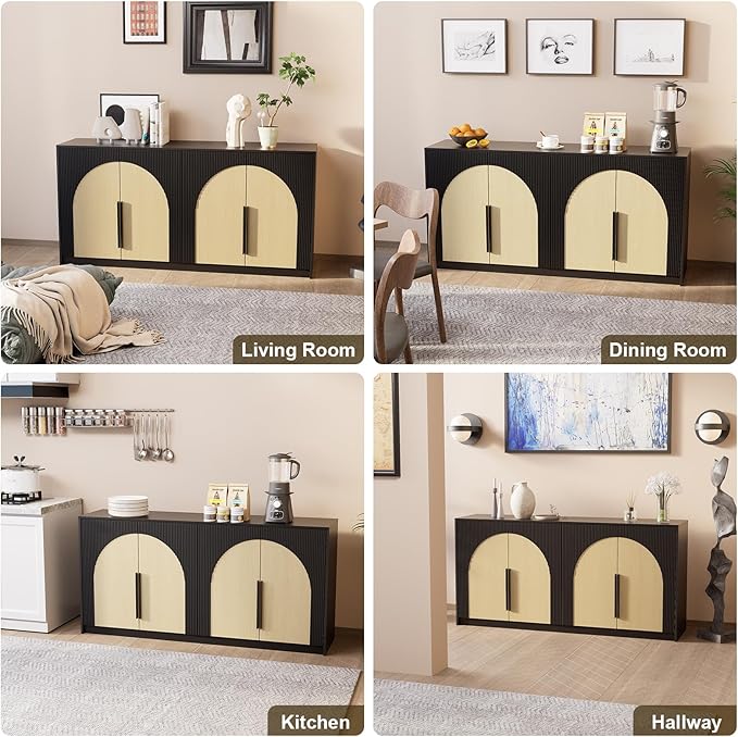 - Suitable For Multiple Scenarios: This sideboard cabinet is ideal for a variety of scenes, such as Dining Room, Living Room, Kitchen, Hallway, etc. It functions as a sideboard, kitchen pantry cabinets, TV console, or coffee bar, meeting diverse storage and display needs while enhancing the room's functionality and aesthetics.