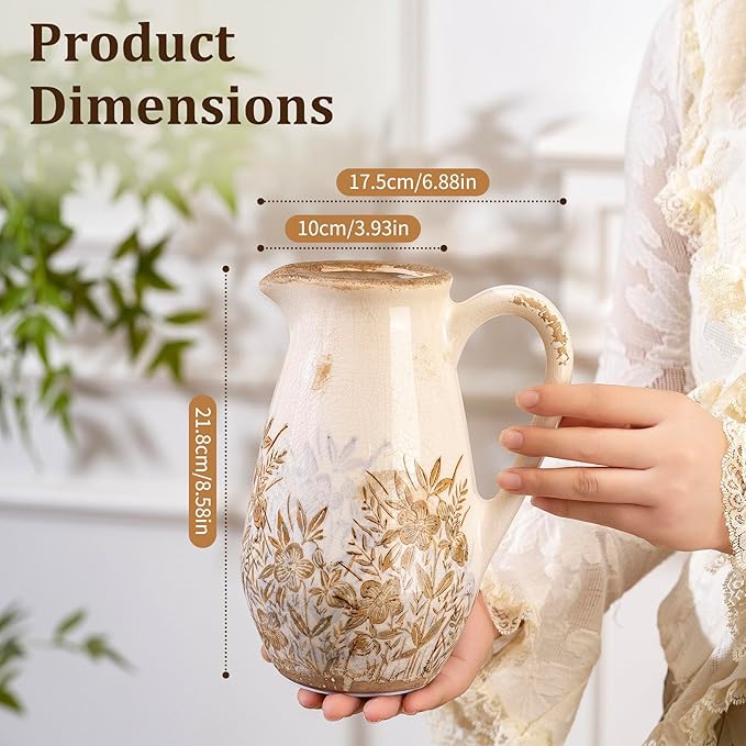- Functional Handle & Stable Design: The classic curved handle offers effortless carrying and convenient refilling, defining its practical pitcher vase charm. Its stable base guarantees secure placement as a versatile decorative vase for daily use anywhere in your home.