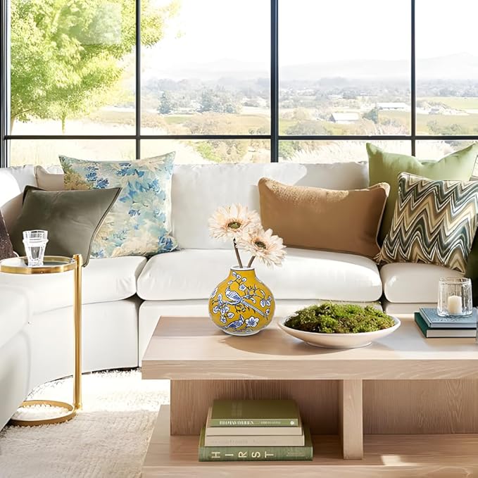 Hollyone Blue and White Vase Porcelain Vases Yellow Small Chinoiserie Decor Yellow Vase Classic Ceramic Gifts Chinese Flower Vases for Bedroom Living Room Console Table Accent Shelf Tabletop Decor