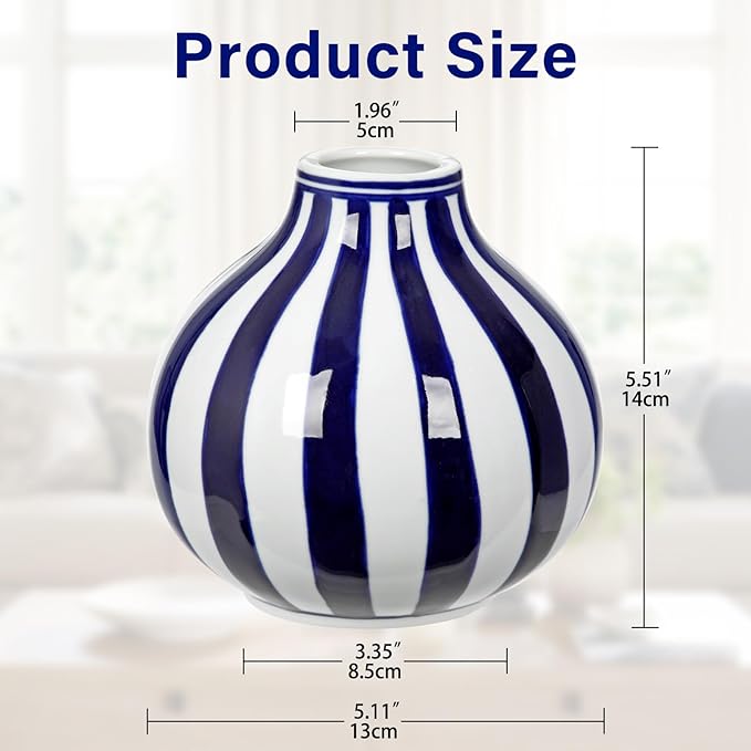 Hollyone Blue and White Vase Porcelain Vases Stripe Small Chinoiserie Vase Classic Ceramic Chinese Floral Vases for Bedroom Living Room Console Table Accent Shelf Tabletop Decor