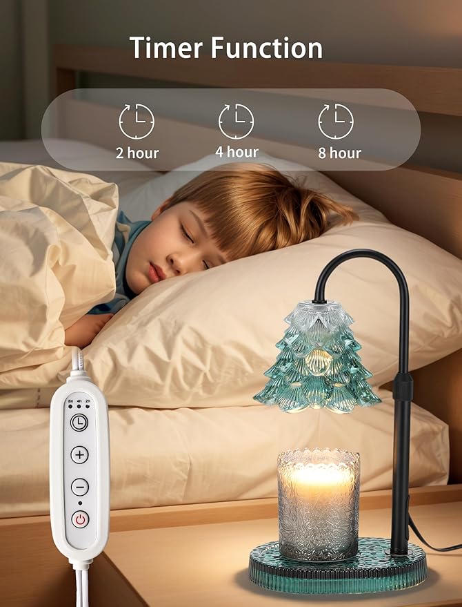 - β CANDLE WARMER LAMP WITH TIMER DIMMER: Features 4-level stepless dimming for quicker candle melting and adjustable brightness. Includes a 2-4-8H timer for automatic shut-off, enhancing safety and convenience.