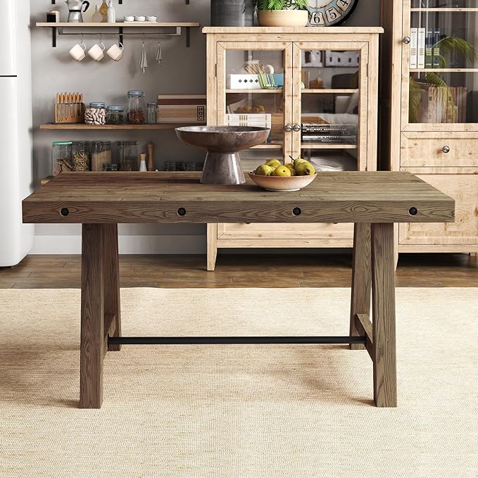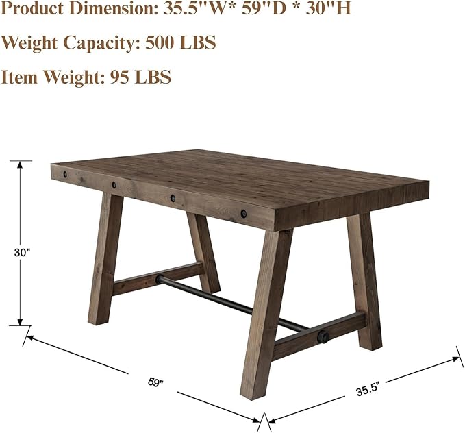 - Durable & Sturdy: This solid wood dining table is built for longevity, crafted from high-quality pine wood, ensures durability and strength.The wooden tabletop and trestle base not only offer stability also ensures both delicacy and load-bearing ability ensuring the table withstands everyday use