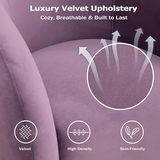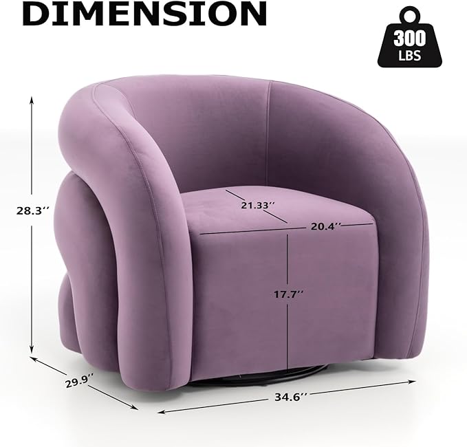 34.6" Velvet Swivel Accent Chair, Modern Round Armchair for Living Room,Upholstered Comfy Sofa Barrel Chairs for Bedroom Reading Apartment Lounge,Fully Assembled(Purple)