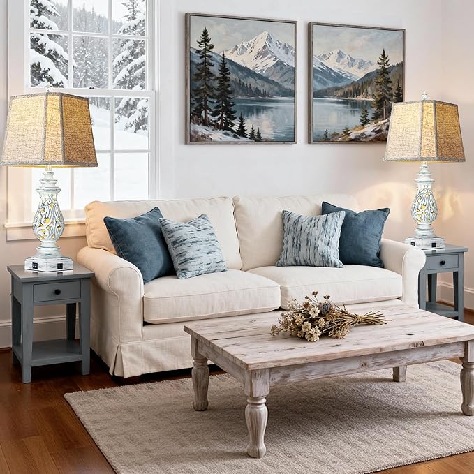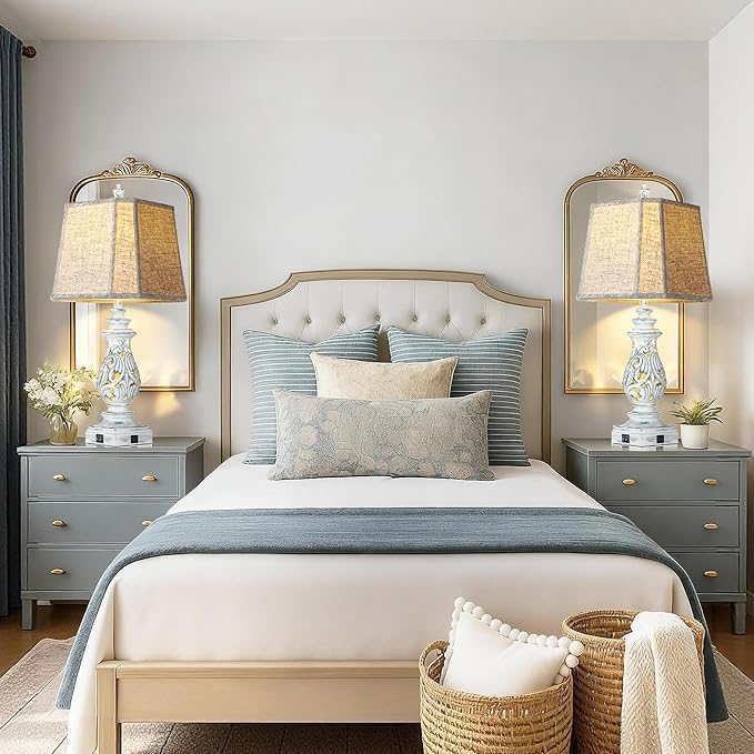 - Perfect Height & Stylish Farmhouse Design: Elevate your bedroom or living room with this set of two 29-inch tall table lamps. Featuring elegant square-corner linen fabric shades in a timeless farmhouse style, they seamlessly complement any home decor, adding warmth to nightstands, dressers, or side tables.