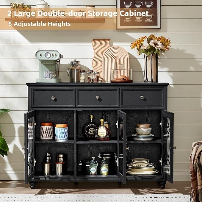 - [More Possibilities of Use]In addition to serving as a side board and buffet table, it can also be used as a coffee bar, bar cabinet, TV stand or even an entryway table. Whether you're brewing a cup of coffee in the morning or gathering with your family and friends at night, this versatile buffet cabinet with storage can meet your needs at different times and create memorable moments for you and your loved ones.