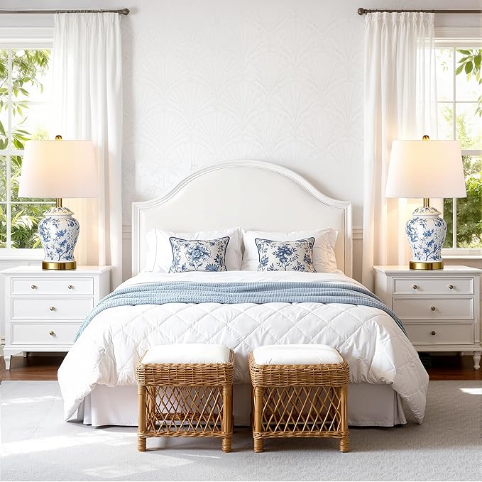 - Easy Setup & Thoughtful Gift Choice: Designed for instant enjoyment, this table lamp for bedroom nightstand comes pre-assembled lampshade—simply place it on the ceramic lamp body and tighten the bulb, the bedside table lamps set of 2 ready to use in minutes. The elegant design and practical features of this chinoiserie lamp make it an ideal gift for holidays or housewarming parties. This blue and white lamp is sure to impress anyone who appreciates style and functionality in their home decor.