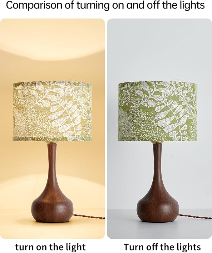 - 💡[Various Scenarios & Decorative Lighting] This table lamp with a green patterned fabric lampshade and wood grain iron base fits a variety of home styles. It provides table lighting for daily needs, delivers glare-free, flicker-free illumination that mimics natural light, adds more light and shadow layering and decorative effects to home lighting, serves as an elegant desktop decoration even when turned off.