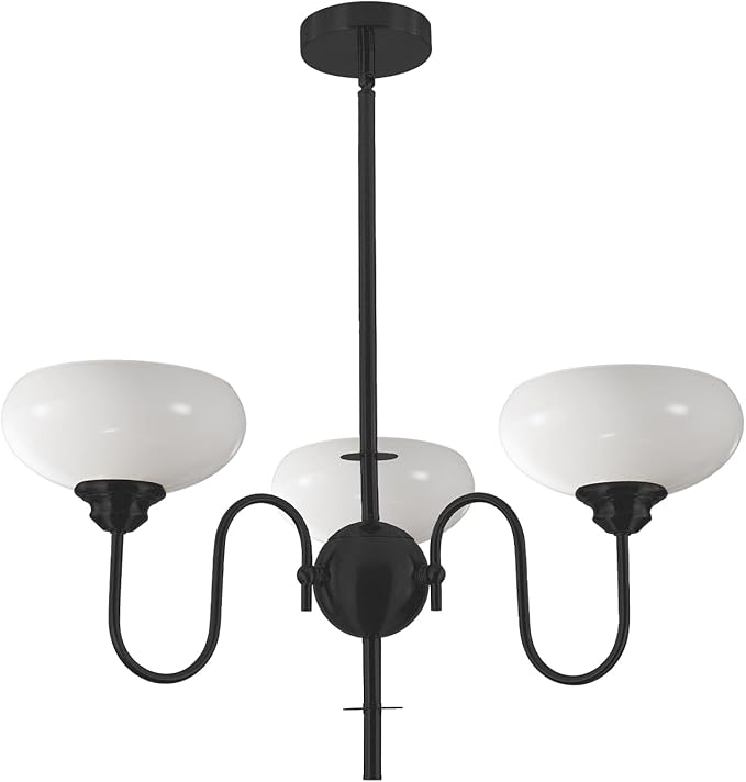- French Country Chandelier: The small chandelier is made with exquisite craftsmanship and is stable and sturdy. The hand-blown milky white lampshade feels smooth and complements the frosted granular black lamp body. The black and white chandelier with a unique appearance can create a certain visual impact anywhere in the room and must not be missed