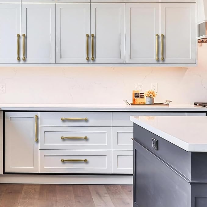 10 Pack 3-3/4inch(96mm) Center to Center Brushed Brass Cabinet Pulls Satin Brass Handles for Cabinets Cupboard Solid Heavy Duty Drawer Handles Dressers Kitchens bedrooms