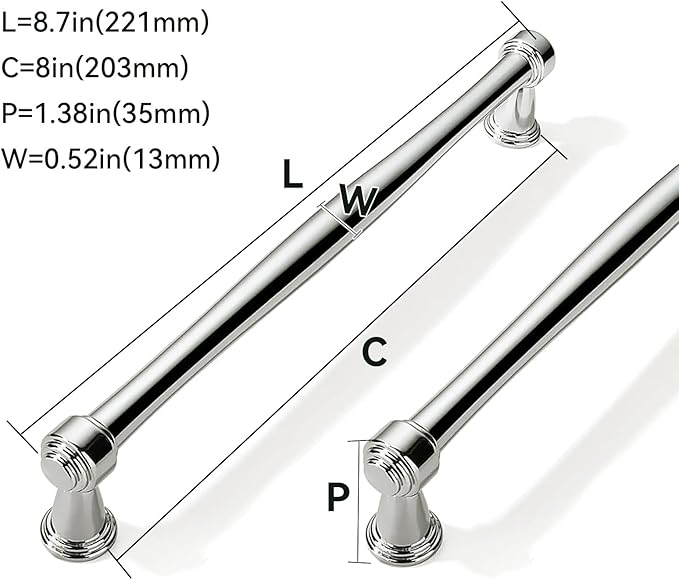 2 Pack 8inch(203mm) Center to Center Vibrant Polished Nickel Cabinet Pulls Handles for Cabinets Cupboard Solid Heavy Duty Drawer Handles Dressers Kitchens bedrooms