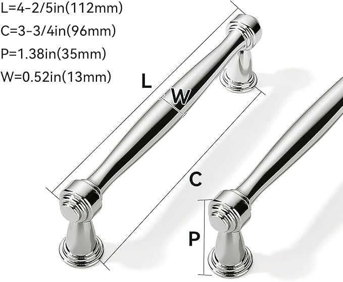 10 Pack 3-3/4inch(96mm) Center to Center Vibrant Polished Nickel Cabinet Pulls Handles for Cabinets Cupboard Solid Heavy Duty Drawer Handles Dressers Kitchens bedrooms