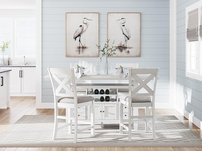 Signature Design by Ashley Robbinsdale Casual Counter Height Dining Table with 10 Bottle Wine Storage, Open Shelves, Drawers and Cabinet, Antiqued White Finish, 36" W x 72" L x 37" H