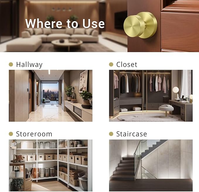 - Trustworthy Quality: This door knob is precision-forged from rugged zinc alloy for lasting strength. Its silky-smooth, hand-friendly contour feels natural to the touch, while the gold coating defies rust and color loss—keeping its refined look year after year