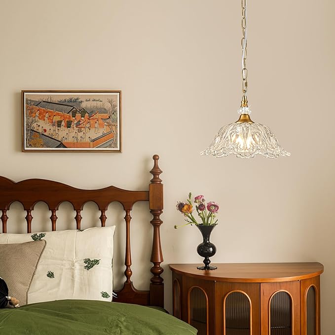 - Bulb Compatibility: The pendant light is compatible with E26 base bulb, including LED, CFL,(supports up to 60W equivalent LED).For optimal visual effect, we recommend using a small bulb that complements the flower-shaped glass lampshade.A properly sized bulb will not protrude from the lampshade.(Note: Bulbs not included)