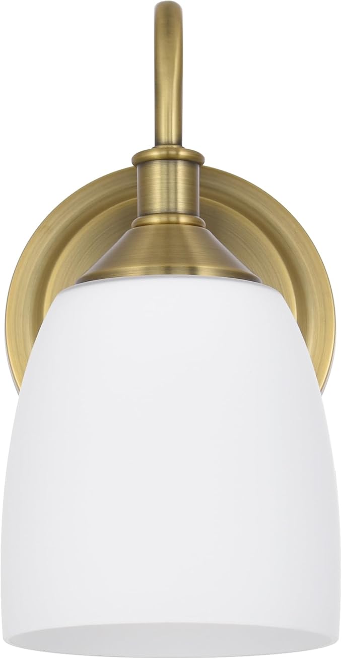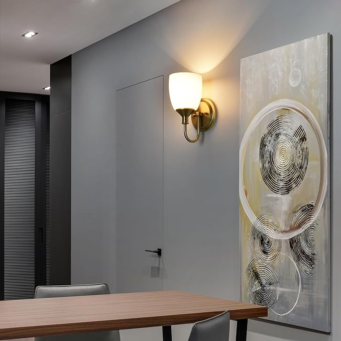 - VINTAGE DESIGN - 1-light champagne bronze wall sconce with white glass is simple but classic, perfect to complement American home décor, suitable for any room of your home, such as bathroom, living room, bedroom, hallway, entryway, etc.