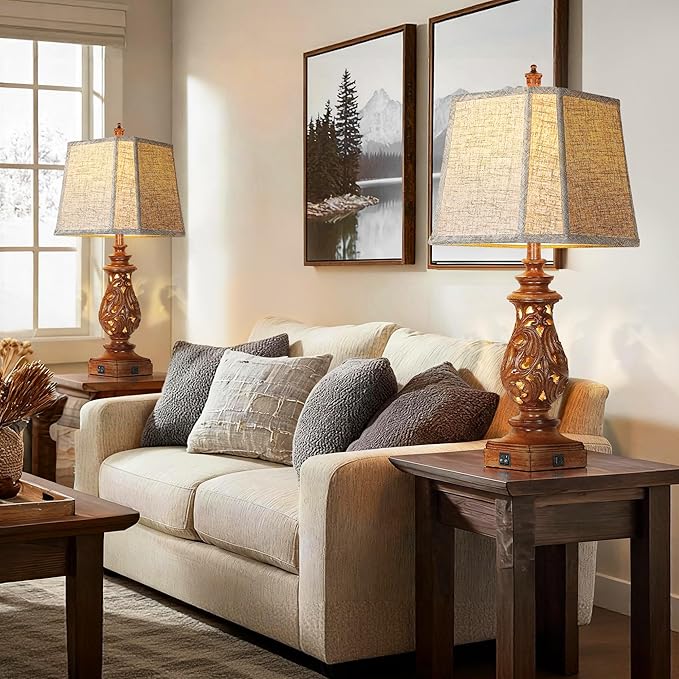 - Perfect Height & Stylish Farmhouse Design: Elevate your bedroom or living room with this set of two 29-inch tall table lamps. Featuring elegant square-corner linen fabric shades in a timeless farmhouse style, they seamlessly complement any home decor, adding warmth to nightstands, dressers, or side tables.